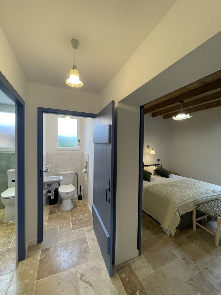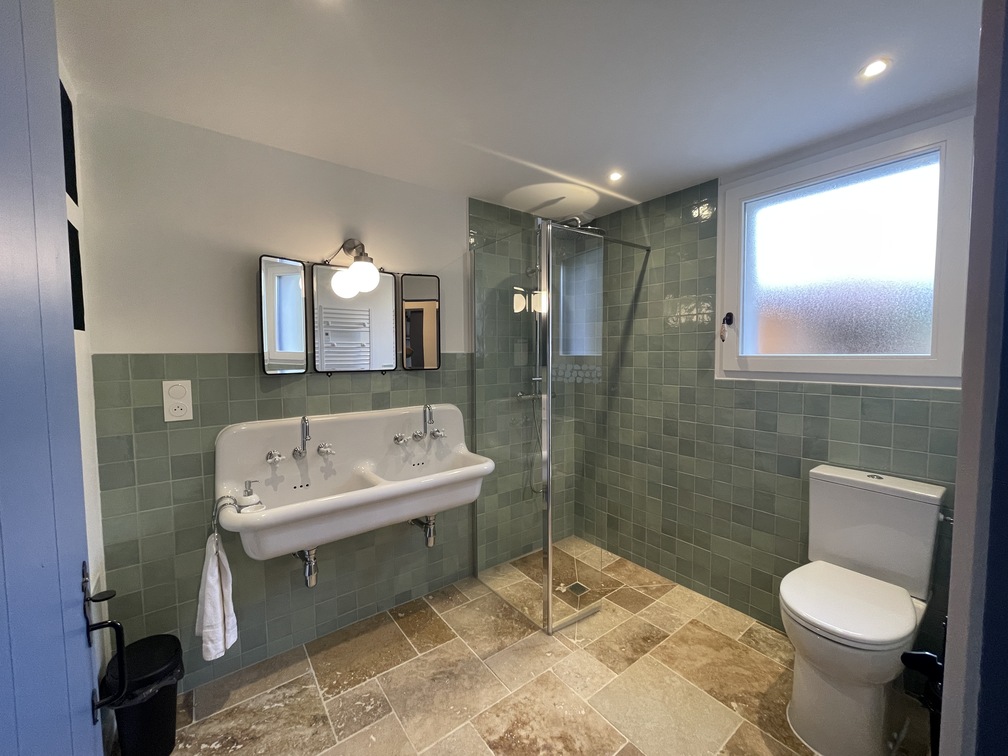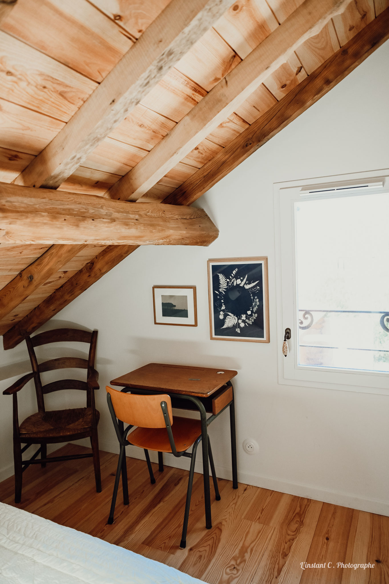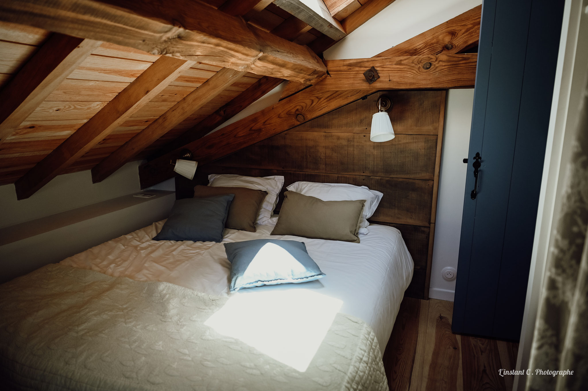 Une chambre double au rez-de-chaussée, avec salle de bain privative (accessible PMR), deux chambres doubles, un dortoir pour 4 enfants ou adultes (lits en 90) et une salle de bain à l'étage. Trois toilettes dans l'ensemble de la maison.