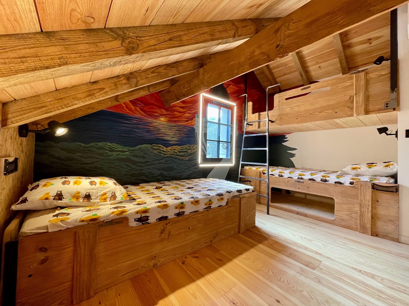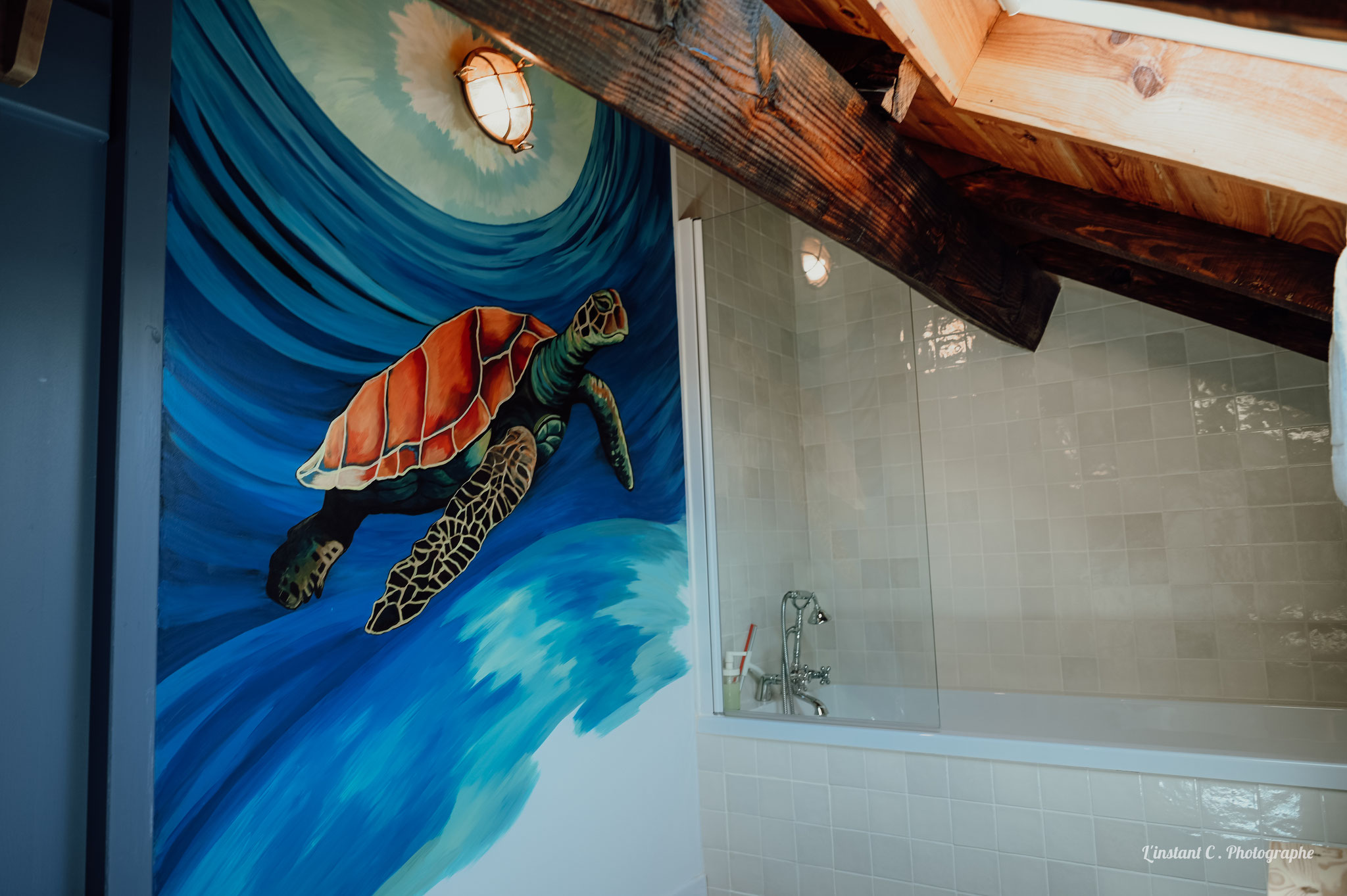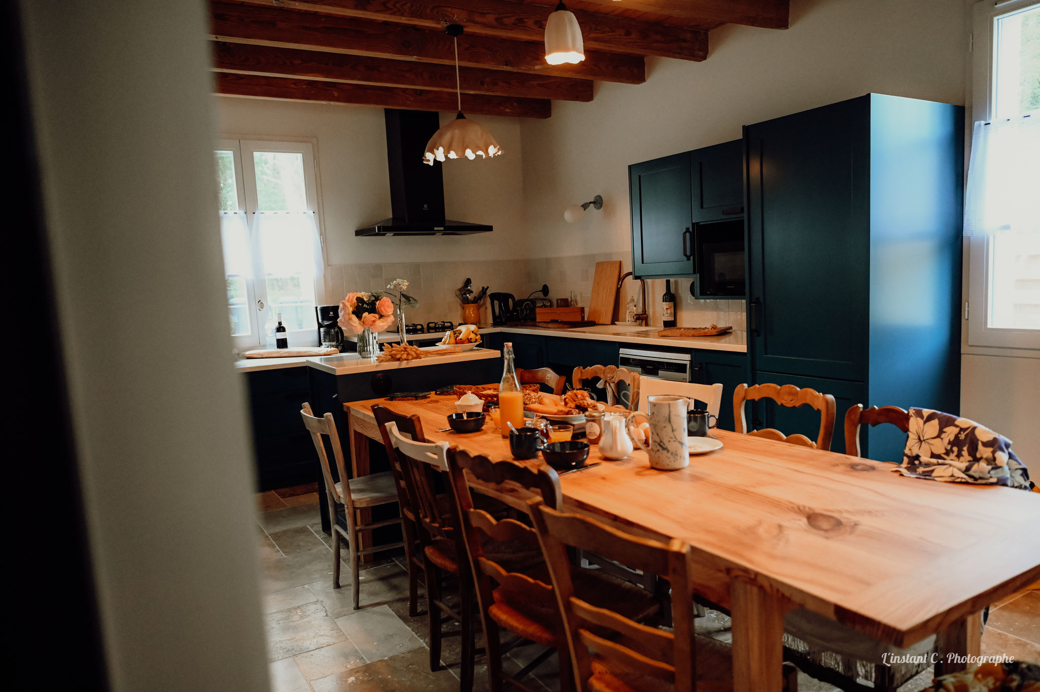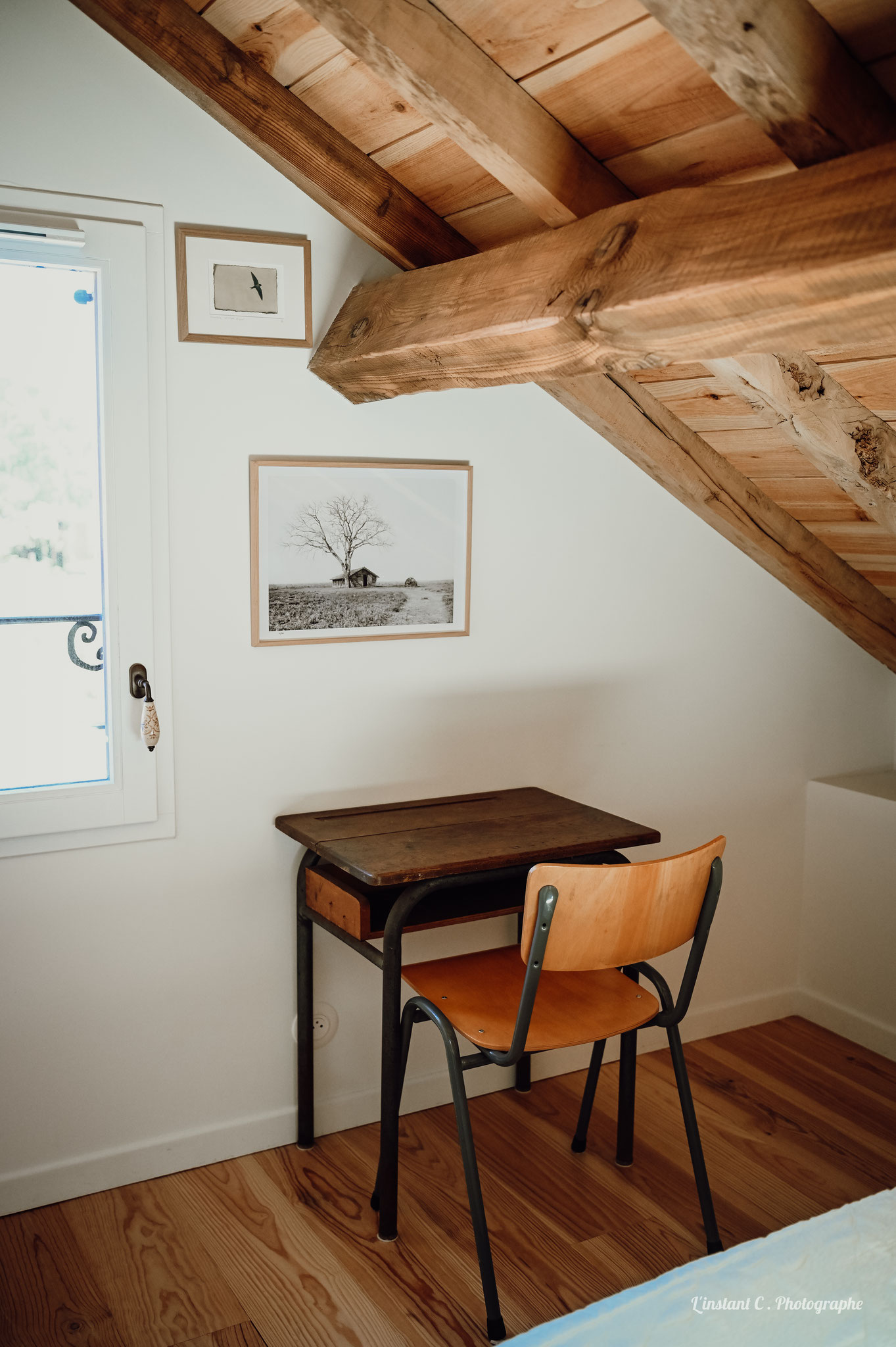 Une chambre double au rez-de-chaussée, avec salle de bain privative (accessible PMR), deux chambres doubles, un dortoir pour 4 enfants ou adultes (lits en 90) et une salle de bain à l'étage. Trois toilettes dans l'ensemble de la maison.