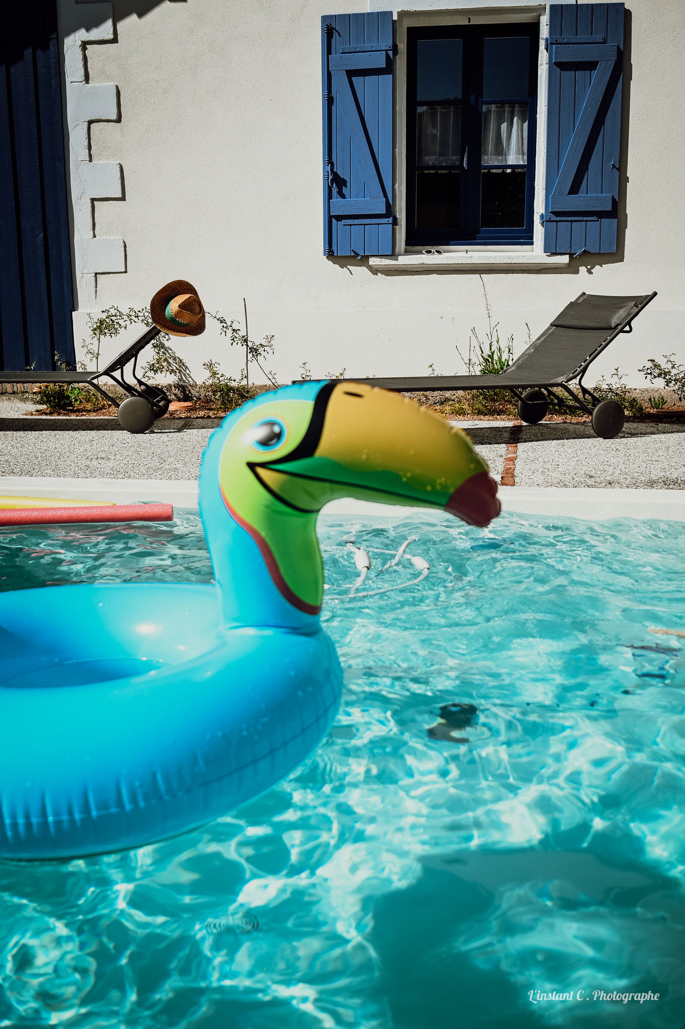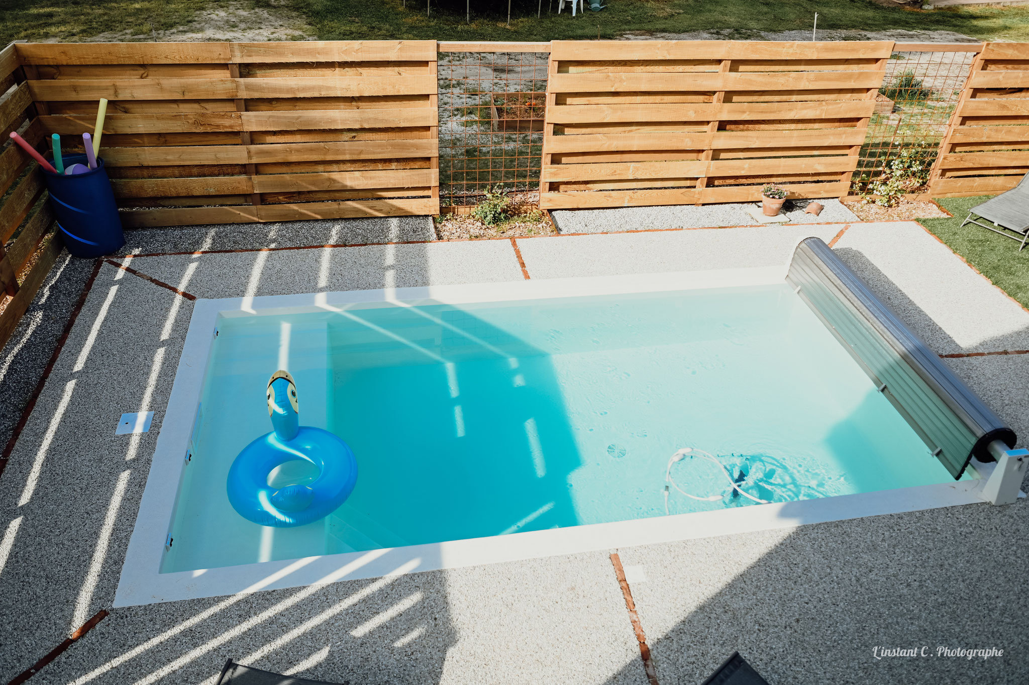 Piscine extérieure : 6 x 3 m - prof 1.40 m / Banquette pour les plus petits à faible hauteur d'eau