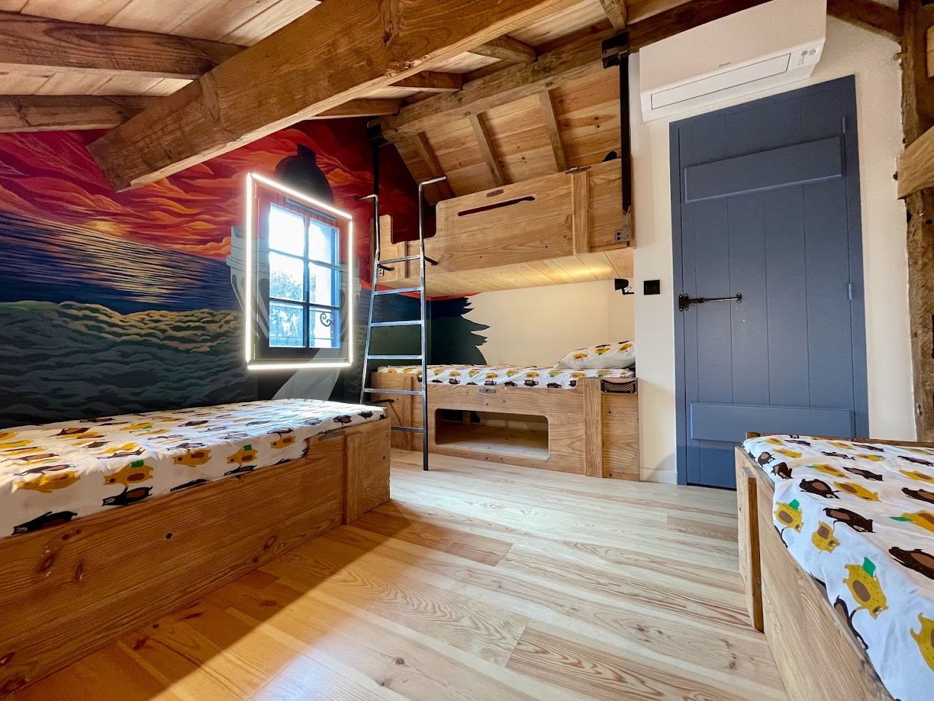 Après un complet aménagement, la maison familiale peut accueillir jusqu'à 10 personnes (attention 9 adultes max) grâce ses 4 chambres