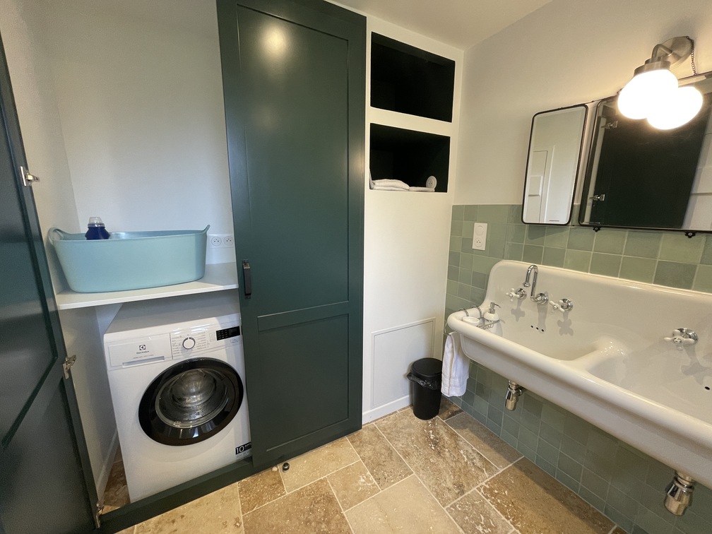 Électroménager : Lave-Linge, lave-vaisselle, réfrigérateur/congélateur bas, plaques mixte induction/gaz, frigo micro-ondes, Four multifonction, machine à café, toaster, bouilloire, presse agrume, sèche serviettes, sèche-cheveux.